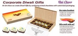 Uni-choco have come up with a unique concept for corporate gifts that we would like to share with you. We make chocolates with colored corporate logos printed on chocolate with edible ink. These are packed in an elegant & customized wooden box with your branding done on the box top and inside lid. The box can also have a message printed on the butter paper.