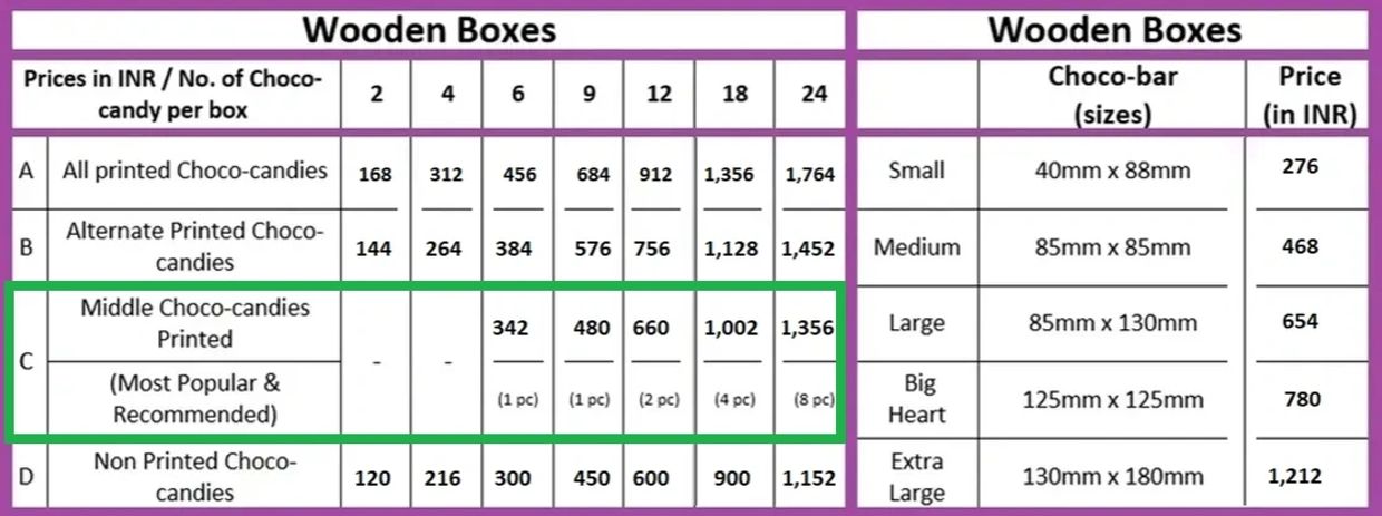 d) The price includes the wooden box with your branding on the box (Maximum 3 colors). Or Digital Printing (Multiple Colors)
